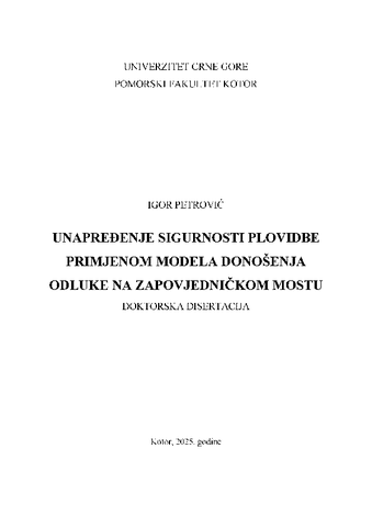 Unapređenje sigurnosti plovidbe primjenom modela donošenja odluke na zapovjedničkom mostu (Serbian)