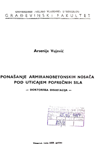 Ponašanje armiranobetonskih nosača pod uticajem poprečnih sila (Serbian)
