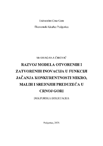 Razvoj modela otvorenih i zatvorenih inovacija u funkciji jačanja konkurentnosti mikro, malih i srednjih preduzeća u Crnoj Gori (sr)