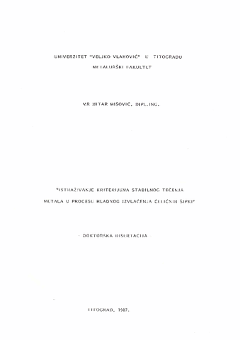Istraživanje kriterijuma stabilnog tečenja metala u procesu hladnog izvlačenja čeličnih šipki (sr)